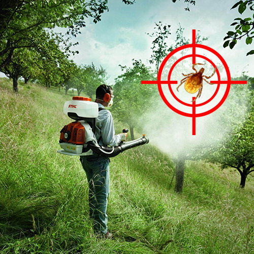 Фахівці розпилюють діючу речовину на ділянці в обраній концентрації. Обов’язково проводиться обробка периметру. Це дозволяє запобігти повторному заселенню кліщів від сусідів.
